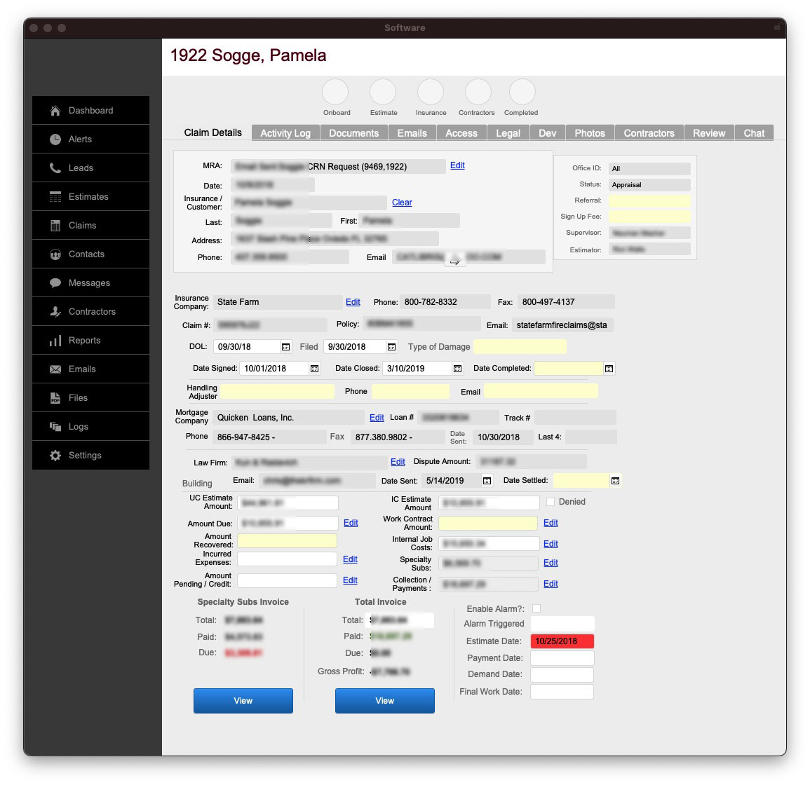 - Create and track invoices for insurance companies and subcontractors.