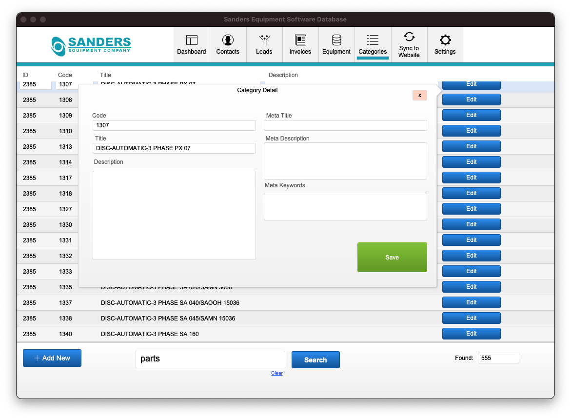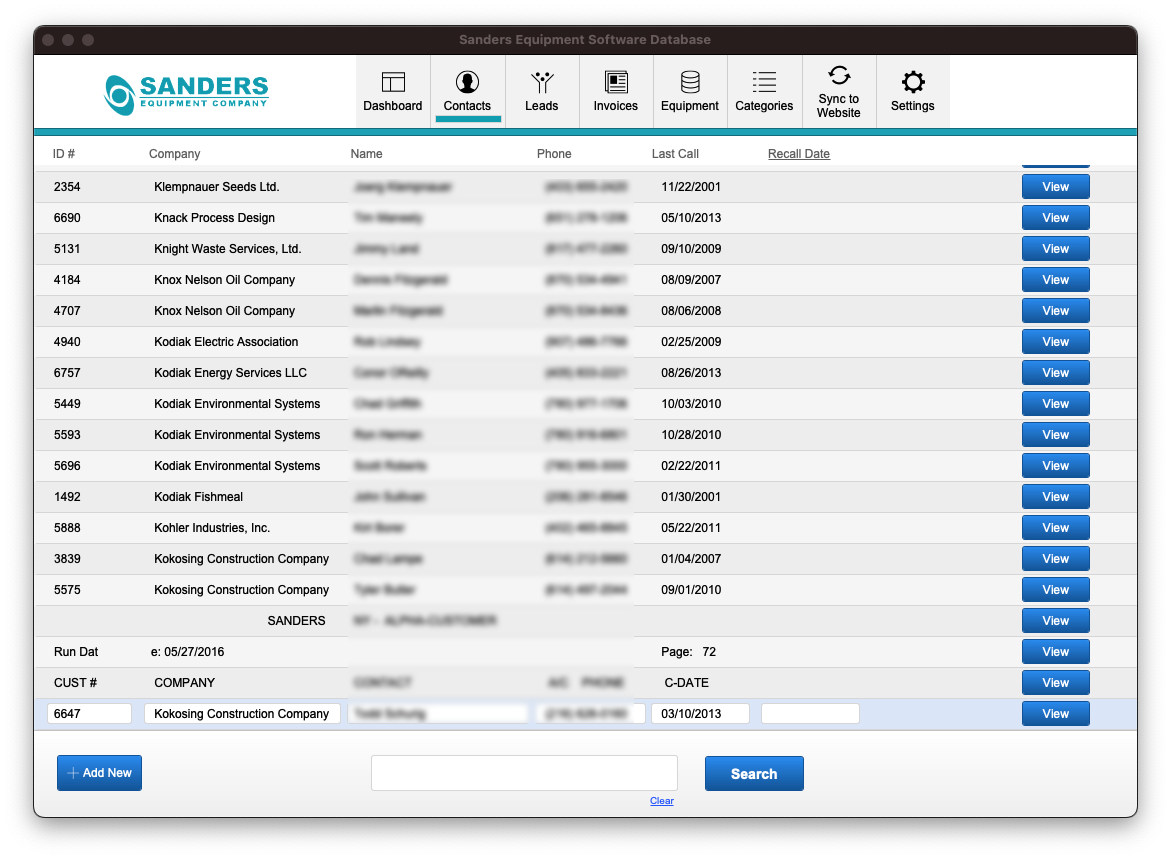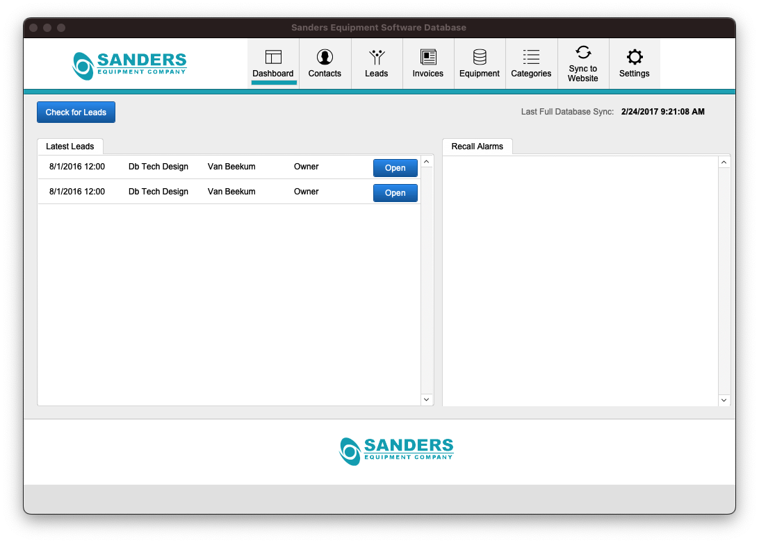 Equipment Inventory and CRM System for Sanders Equipment Company
