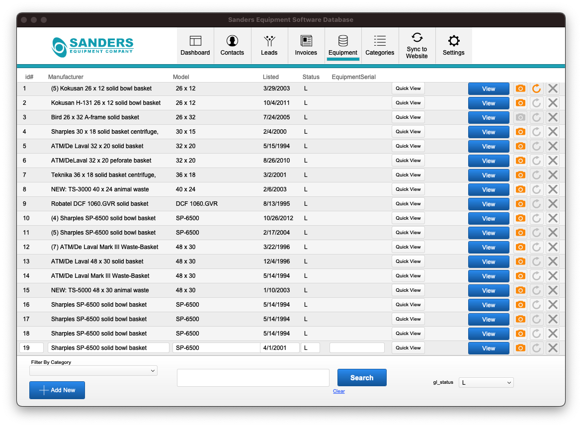 We had the privilege of collaborating with Sanders Equipment Company, a Florida-based leader in providing cost-effective industrial centrifuge solutions, to develop a comprehensive database and software solution that enhances their business operations and customer interactions. The Challenge: Sanders Equipment Company required a robust system to manage their extensive inventory of industrial centrifuges, streamline customer relationship management (CRM), track equipment details, handle invoicing, and facilitate seamless online synchronization with their website to showcase available products for sale. The challenge was to create a user-friendly and efficient solution that would meet these diverse needs. Our Solution: We created a custom database and software system tailored to the unique requirements of Sanders Equipment Company. Here are the key features of the solution: