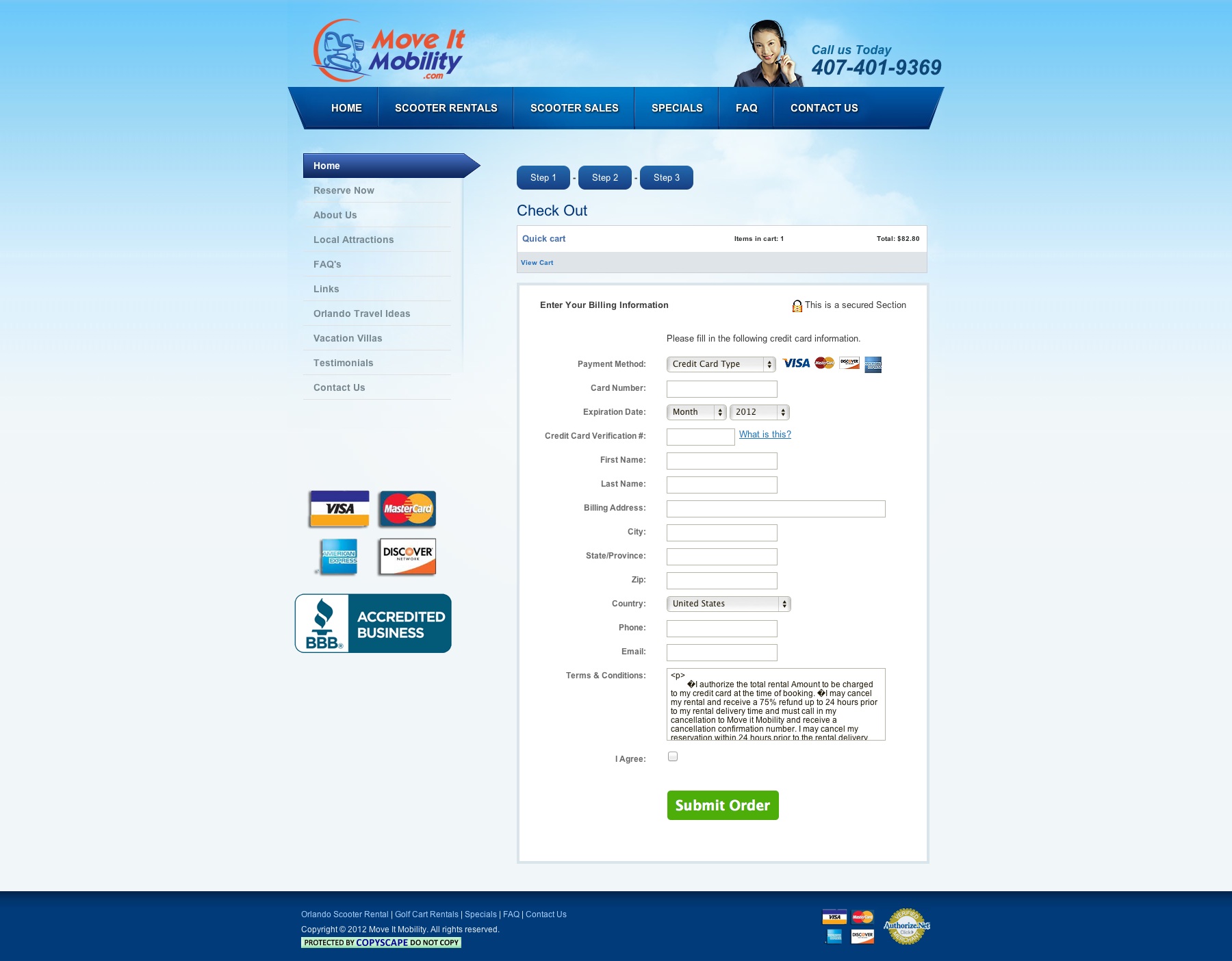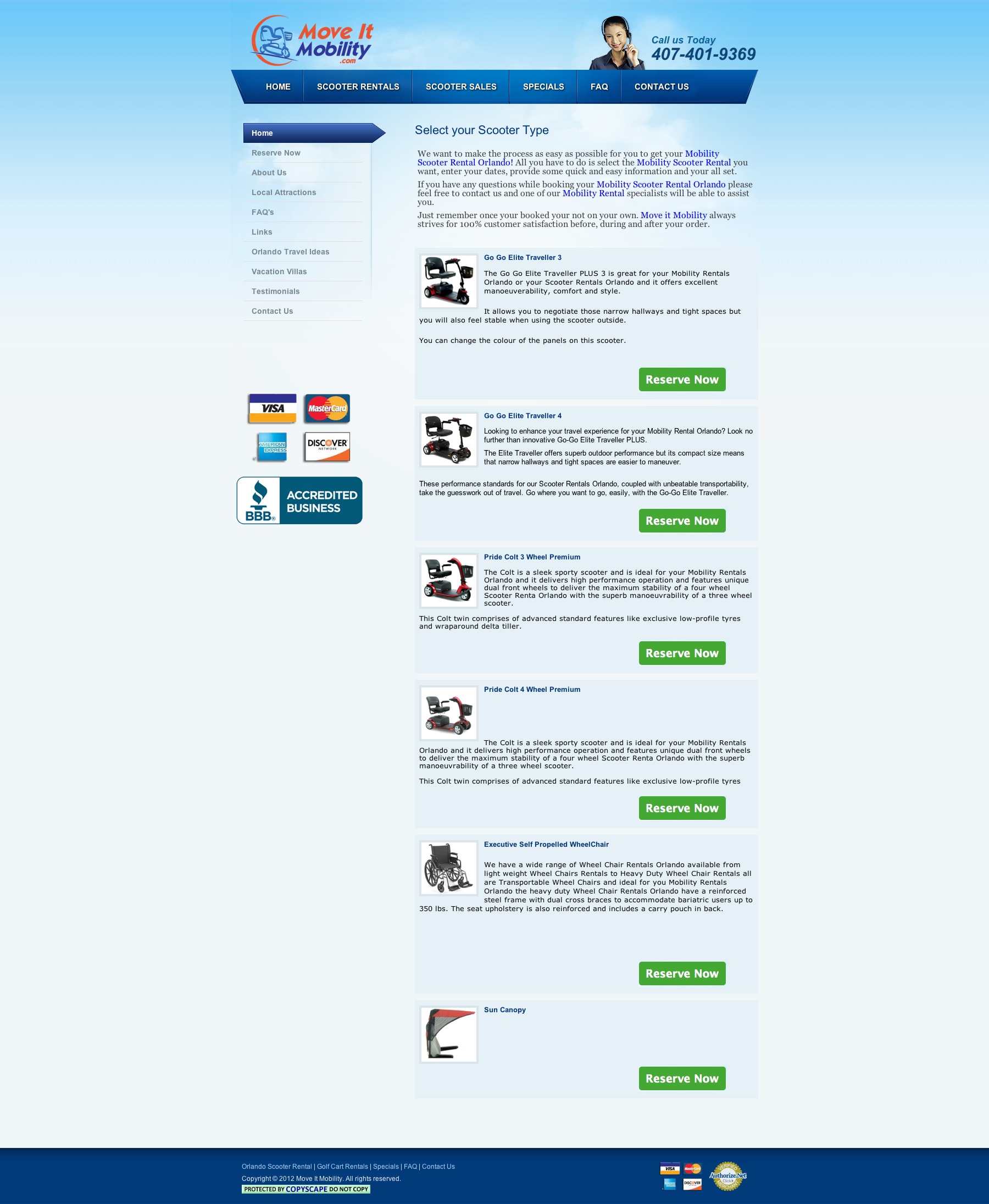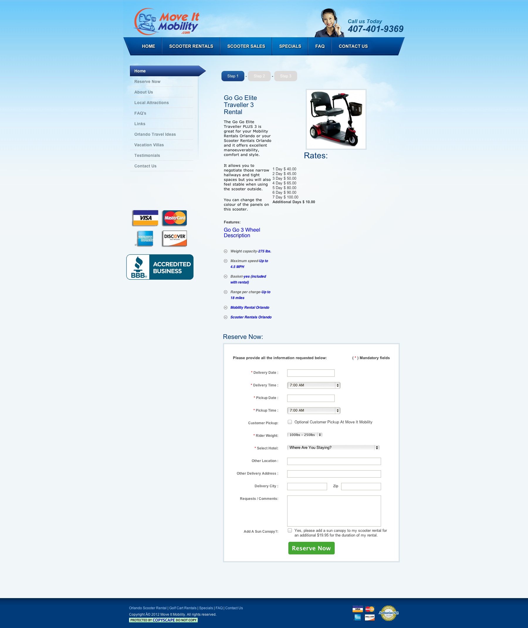 Create a simple to use website to book mobile scooters for rentals in the orlando area.