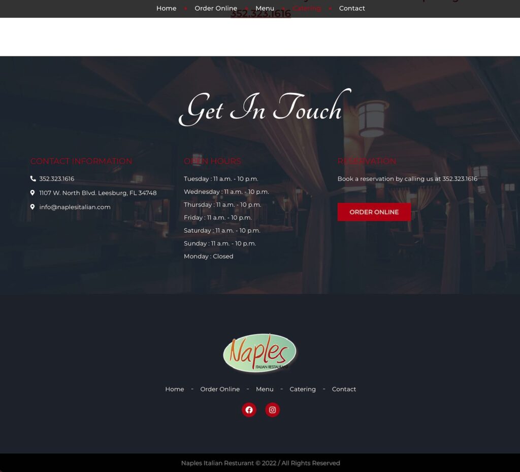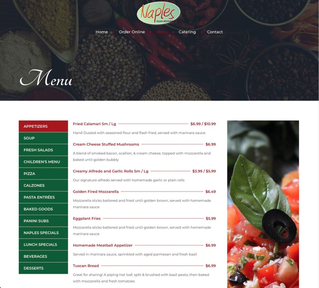 Italian design, fresh food, Naples Italian Restaurant in Leesburg Florida